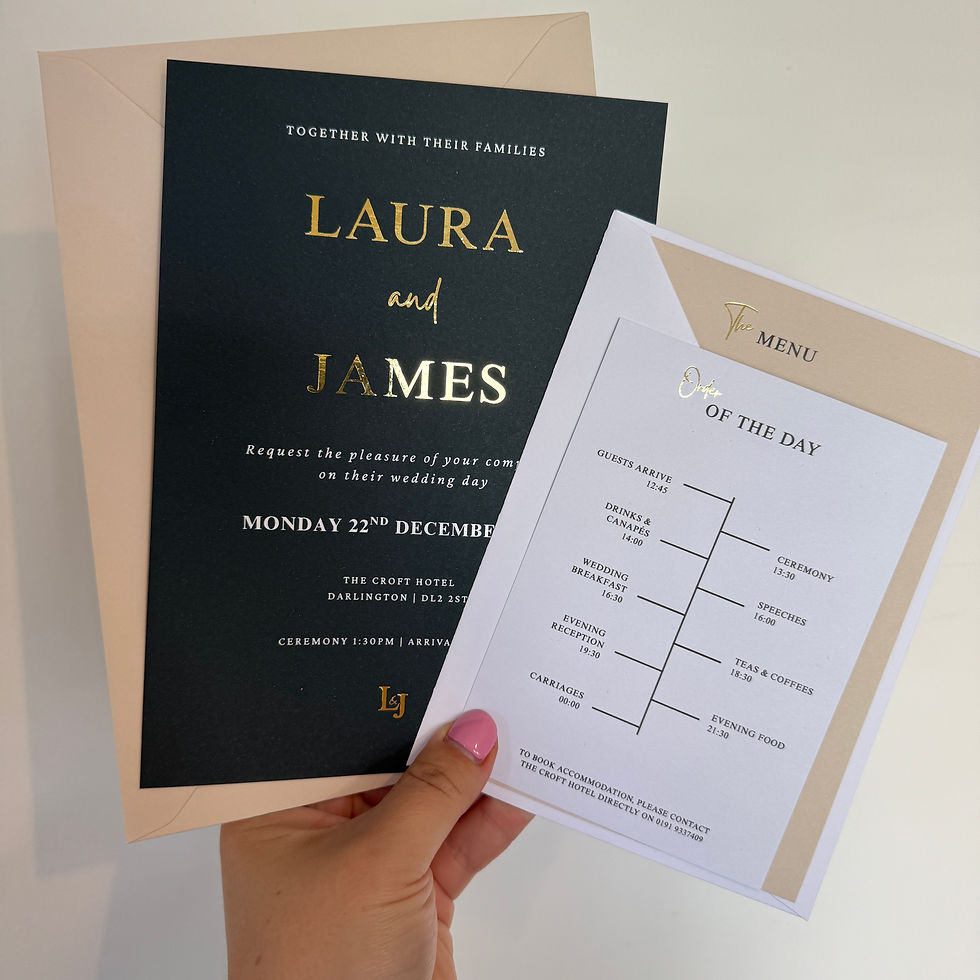 FIRSTLY, I WOULD REALLY RECOMMEND THINKING ABOUT WHAT INFORMATION YOU NEED TO GET ACROSS TO YOUR GUESTS AND WHAT INFORMATION YOU NEED BACK FROM THEM. THIS CAN BE REALLY HELPFUL WHEN DESIGNING YOUR INVITATIONS. IN ADDITION TO ALL THE GENERAL STUFF LIKE LOCATION, TIMINGS ETC. DO YOU HAVE MENU OPTIONS YOU NEED TO COLLECT?